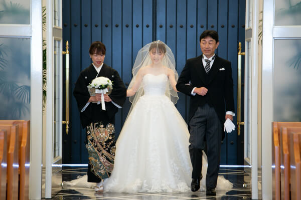 新婦様はお父様お母様と3人でご入場