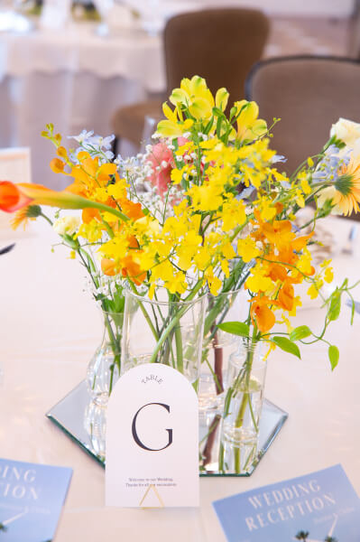 フラワーコーディネートはイエロー・オレンジが中心の