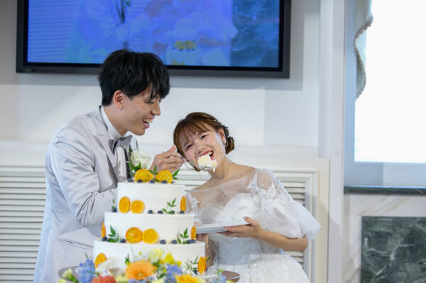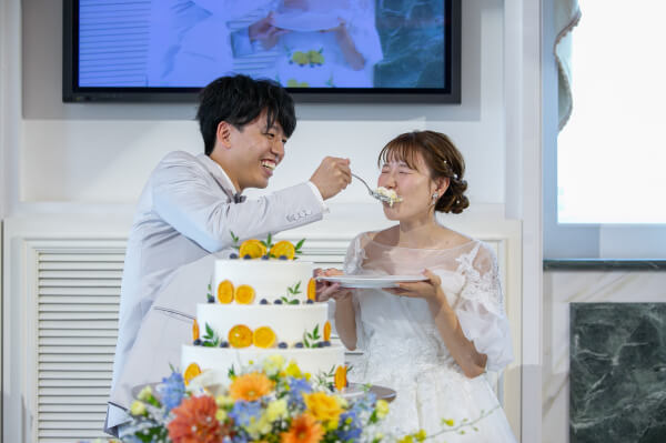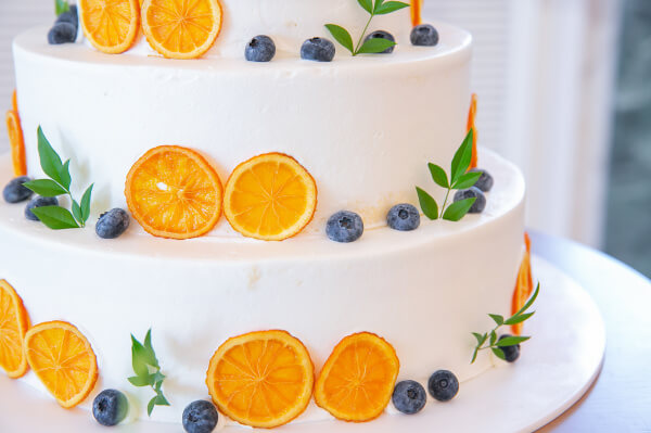 ウェディングケーキもオレンジがたっぷり使われ